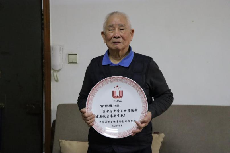 11月26日,公司副经理郭献中与原beats365官方网站体育教学部部长孙洪涛教授受中国老员工体育协会田径分会委托,一同前往beats365老教授官世焜家中为其颁奖,本奖项全国仅八位专家获得。