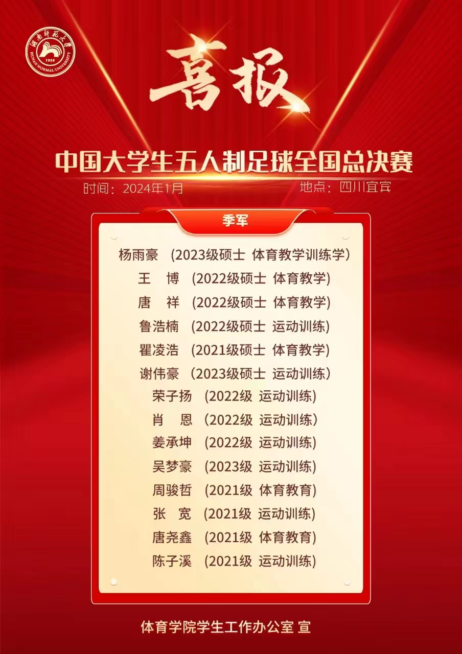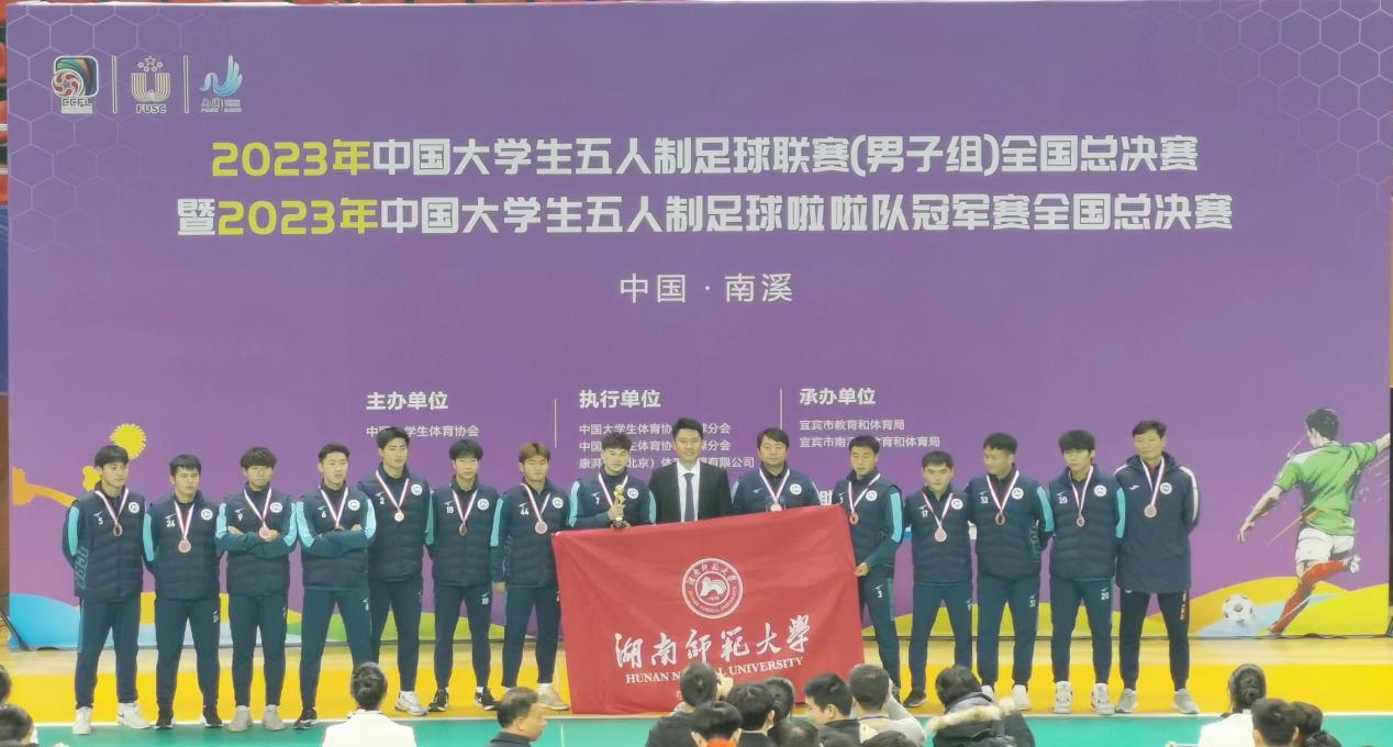 beats365官方网站男子足球队续2023年10月在安徽芜湖,获得2023年中国老员工五人制足球联赛北区(男子组)“总冠军”的好成绩,首次跻身全国总决赛,获得全国总决赛“季军”,开创了beats365官方网站在此赛事的历史最好成绩。