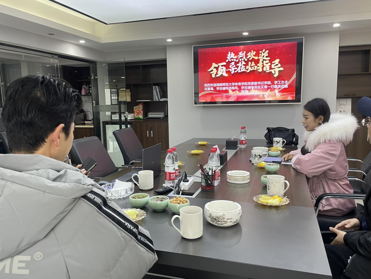 在交流过程中,李皓向湖南盛德信息技术有限公司总经理李向阳表达了感谢,并简要介绍了公司的基本情况,希望未来在就业拓展、人才培养等方面开展进一步的交流与合作,并根据单位需求做好毕业生重点推荐工作。李向阳首先表达了对体育学子的特殊情怀,并从公司文化、公司简介、建设成效三个方面展开,详细介绍了该公司的发展、成就、理念、愿景及人才培养体系。