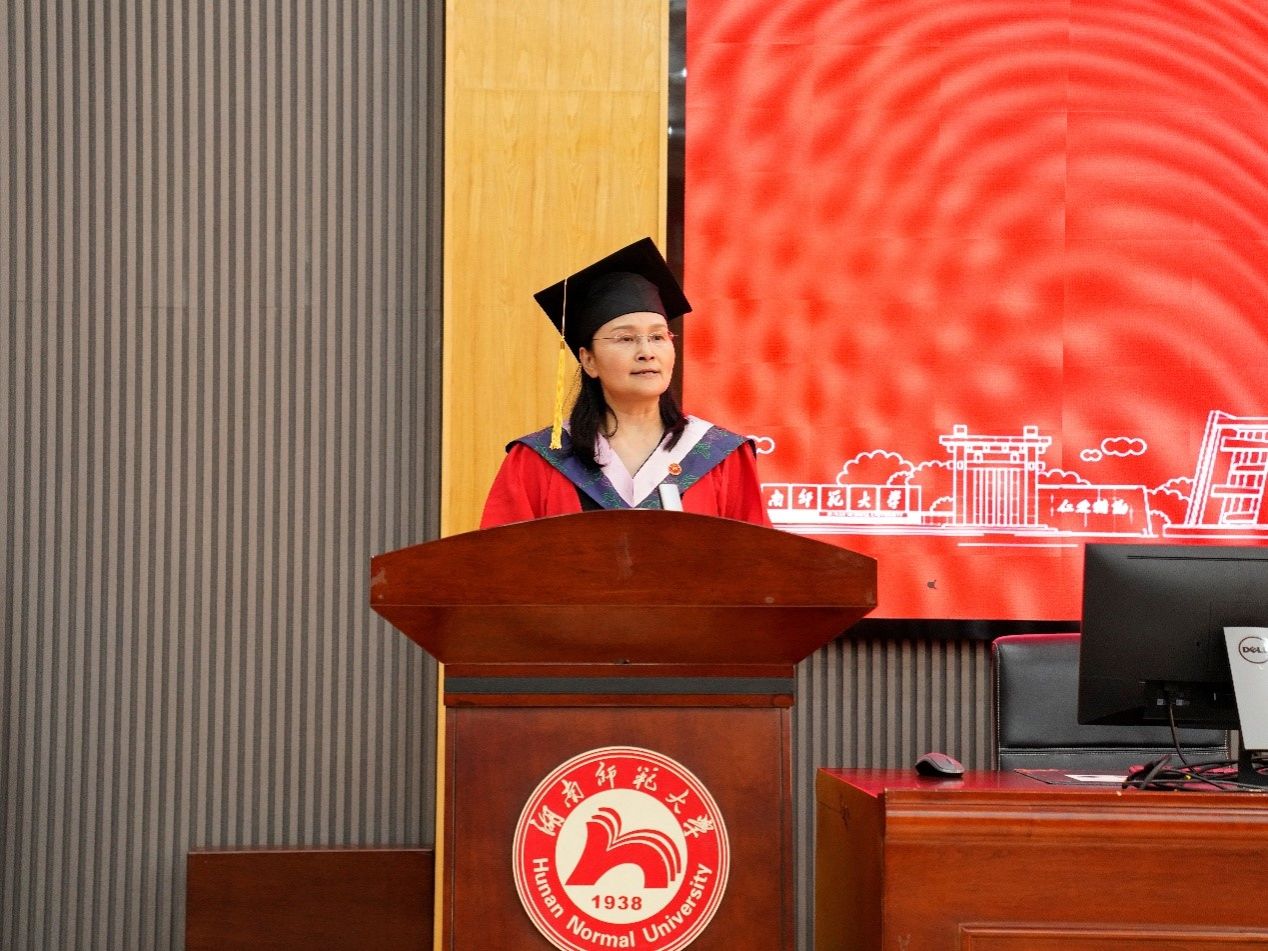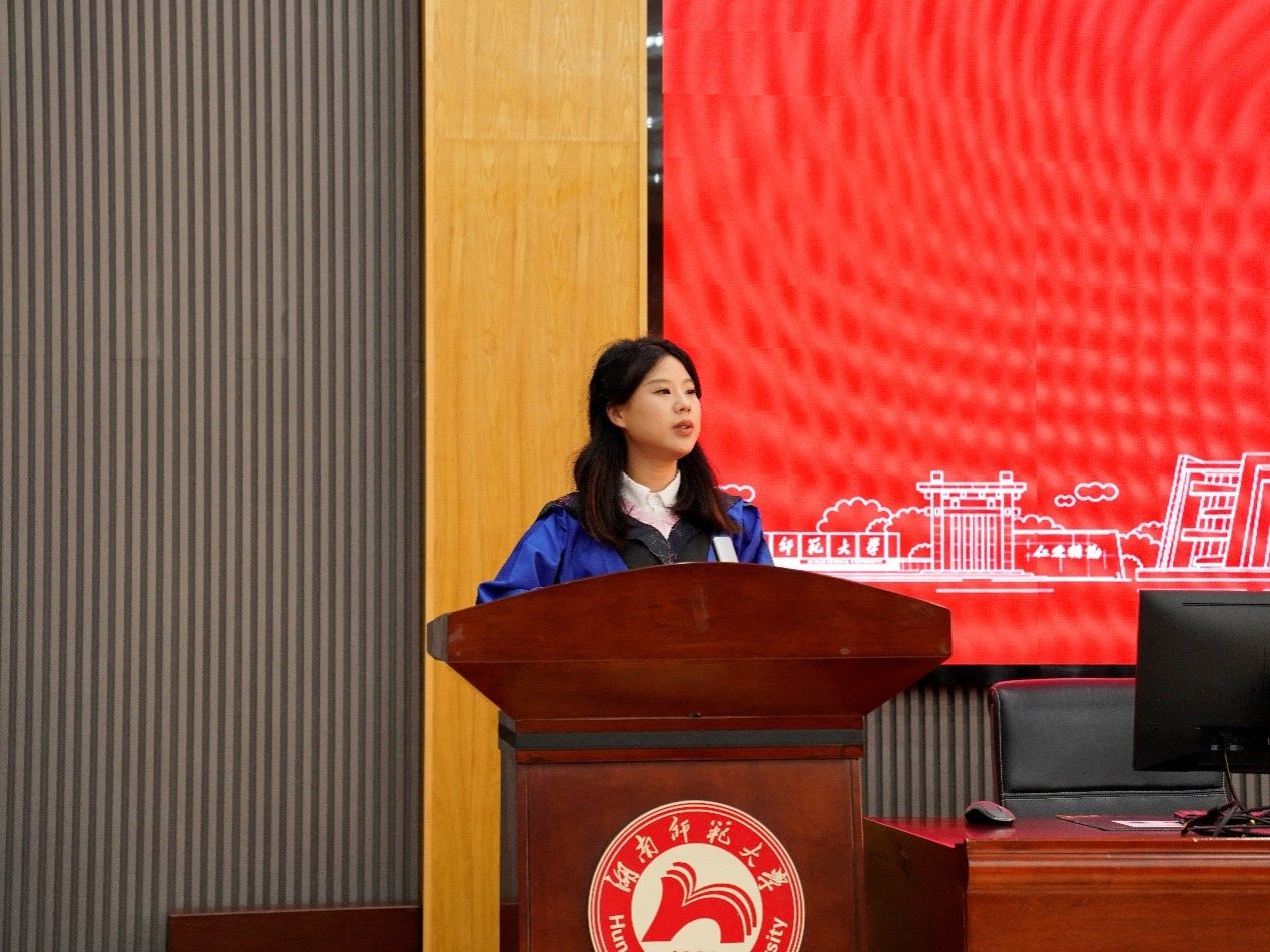 毕业研究生代表高曼珊发言,她代表全体毕业生,向辛勤培育学子的院领导及老师们致以深深的敬意与由衷的感谢,并深情表示:“无论未来是投身科研、执教讲台,还是进入企事业单位,师大体院赋予我们的精神印记永不磨灭。新一代学子定将秉承院训初心,在以体育人的征程上续写新章!”同时祝愿母校基业长青,师长桃李满园。