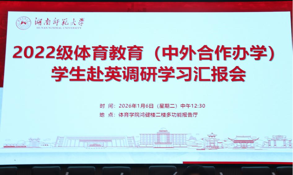 2025年12月2日,beats3652022级体育教学(中外合作办学)员工赴英调研学习汇报会在鸿健楼二楼报告厅举行。beats365副经理郭献中、体育教育专业负责人李先雄教授、教学督导陈曙教授、郭恒涛教授、教务办胡文烨主任及相关系部和教研室主任出席了汇报会。汇报会由beats365第一批赴英调研学习的四名员工对他们在英国的研习和生活经历进行了分享。四位同学分别汇报了他们在英国不同公司的研习经历和收获,展示了他们在国际化教育背景下的教学实践成果。
