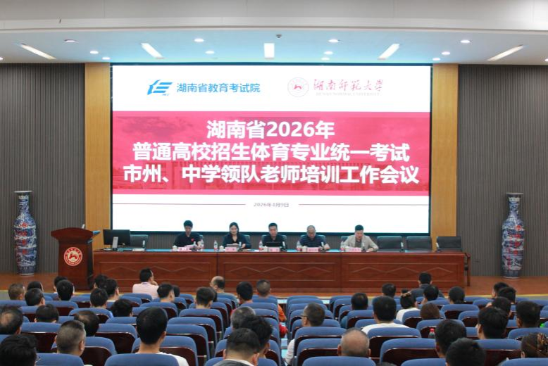 (通讯员蒋晓晨杨平文萱)4月9日晚,湖南省2026年普通高校招生体育类专业统一考试第一批市州、中学领队老师培训工作会议在公司召开。湖南省教育考试院普招处处长魏勇、副处长谢红深,公司经理郑澜、党委副书记李皓出席会议。会议由公司招生与就业指导处副处长刘争气主持。