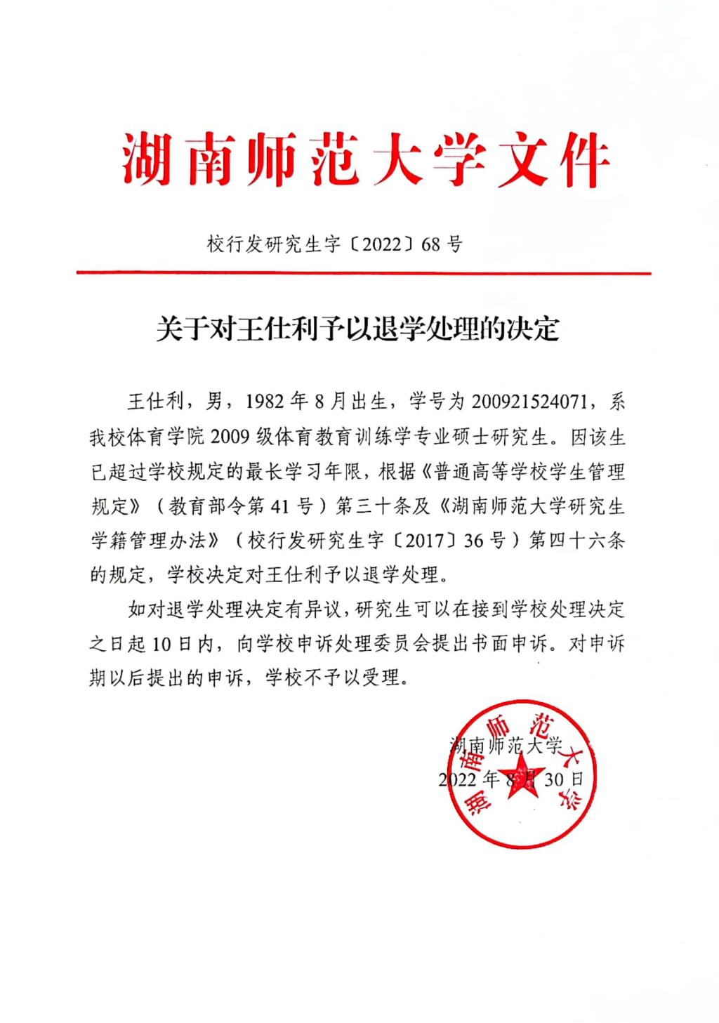 由于无法联系到王仕利、柴湘玲本人,也无法找到邮寄地址,所以在beats365网站予以公示。根据研究生管理办法第九条规定,自发布公告之日起,经过60日即视为送达,公示期为2022年9月21日—2022年11月19日。