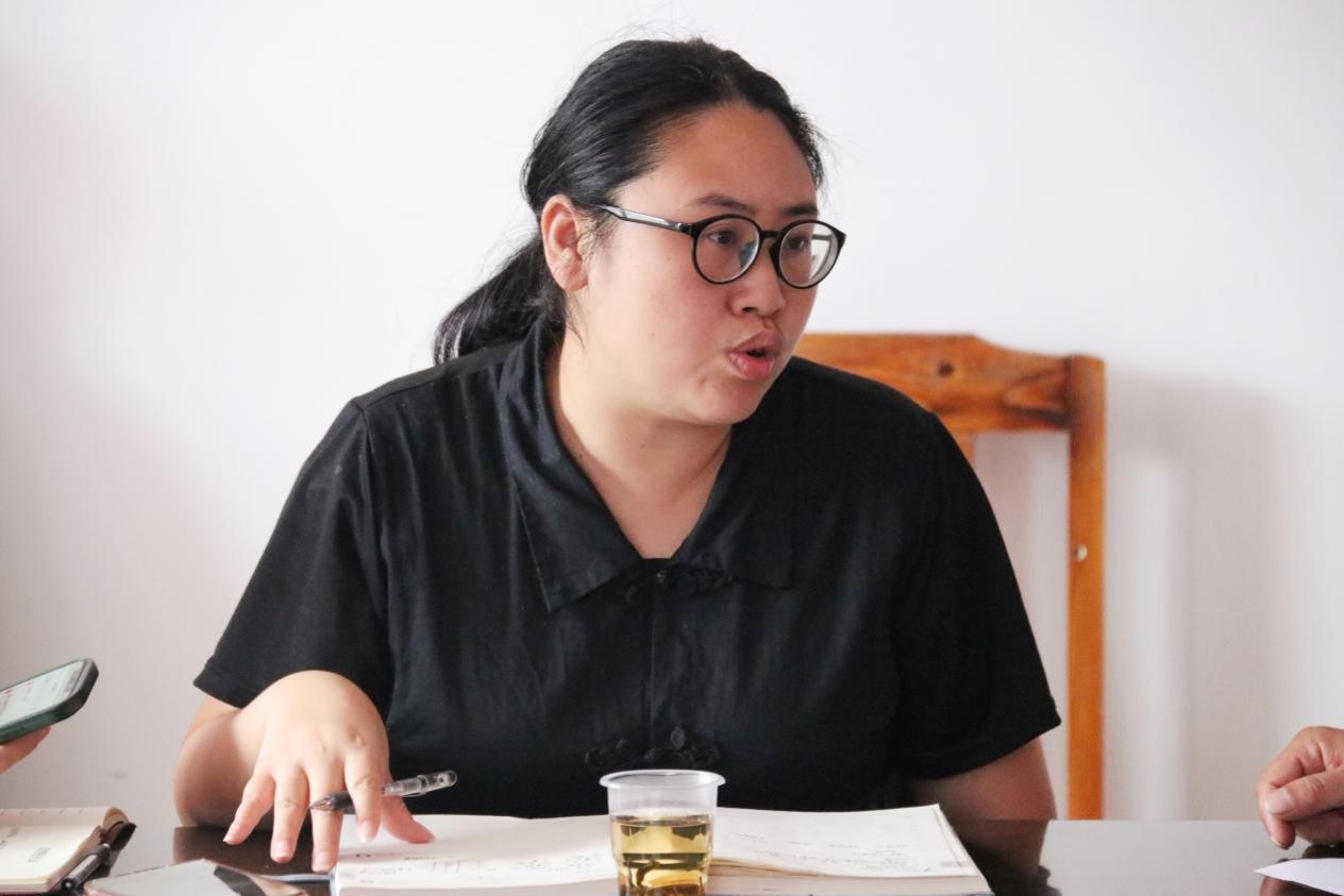 队长李思对相关工作进行了下一步安排,并表示团队会尽力配合好工作的开展。最后团队成员依次向村干部们进行了自我介绍,包括各自的组别及专业优势,宋鑫对团队的工作表示信任与祝愿,她希望团队成员发挥好各自的专业优势,见证借母溪村的人文美景,讲好借母溪村故事。