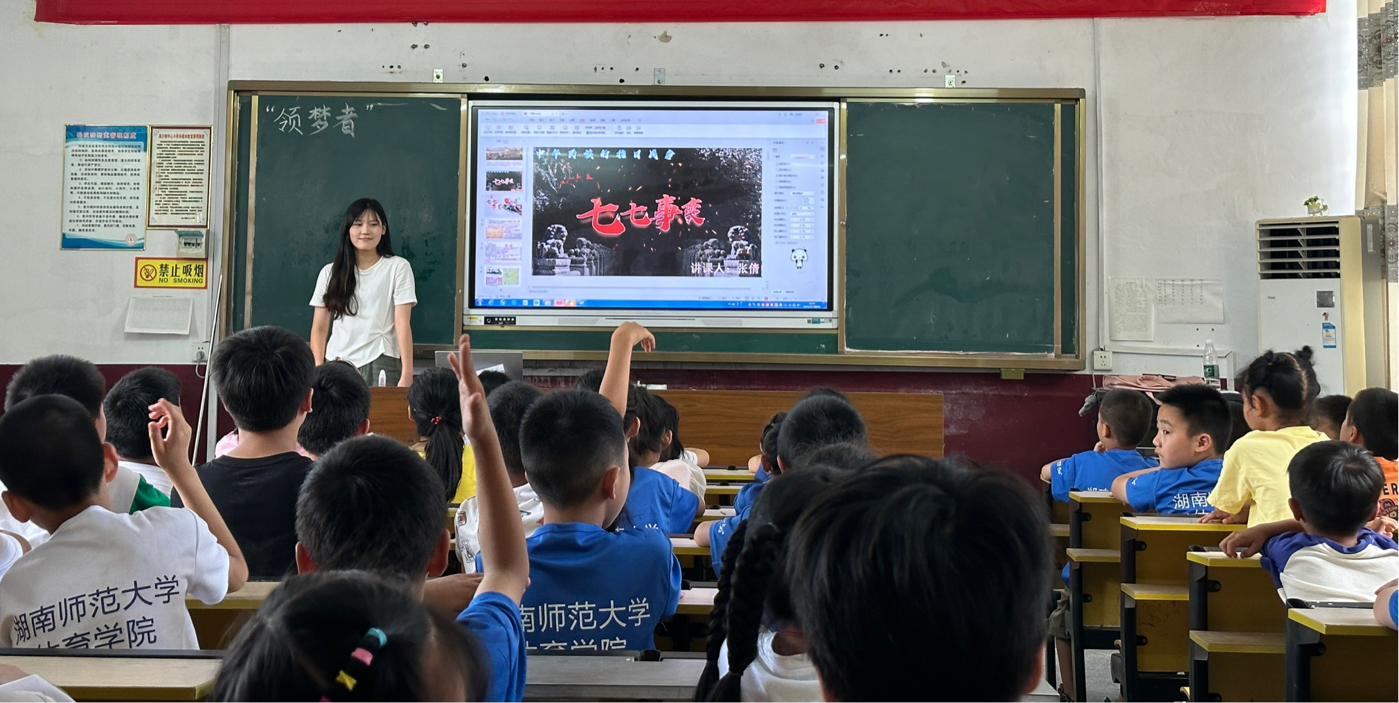 (通讯员:张倩 石梦琪 张毓轩 张梓杨)2023年7月7日是“七七事变”爆发八十六周年的日子,也是中国人民抗日战争纪念日。beats365“领梦者”暑期三下乡赴高沙镇中心小学实践团开展爱国主义教育课程。