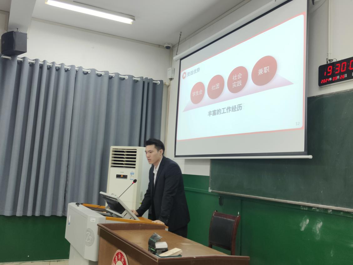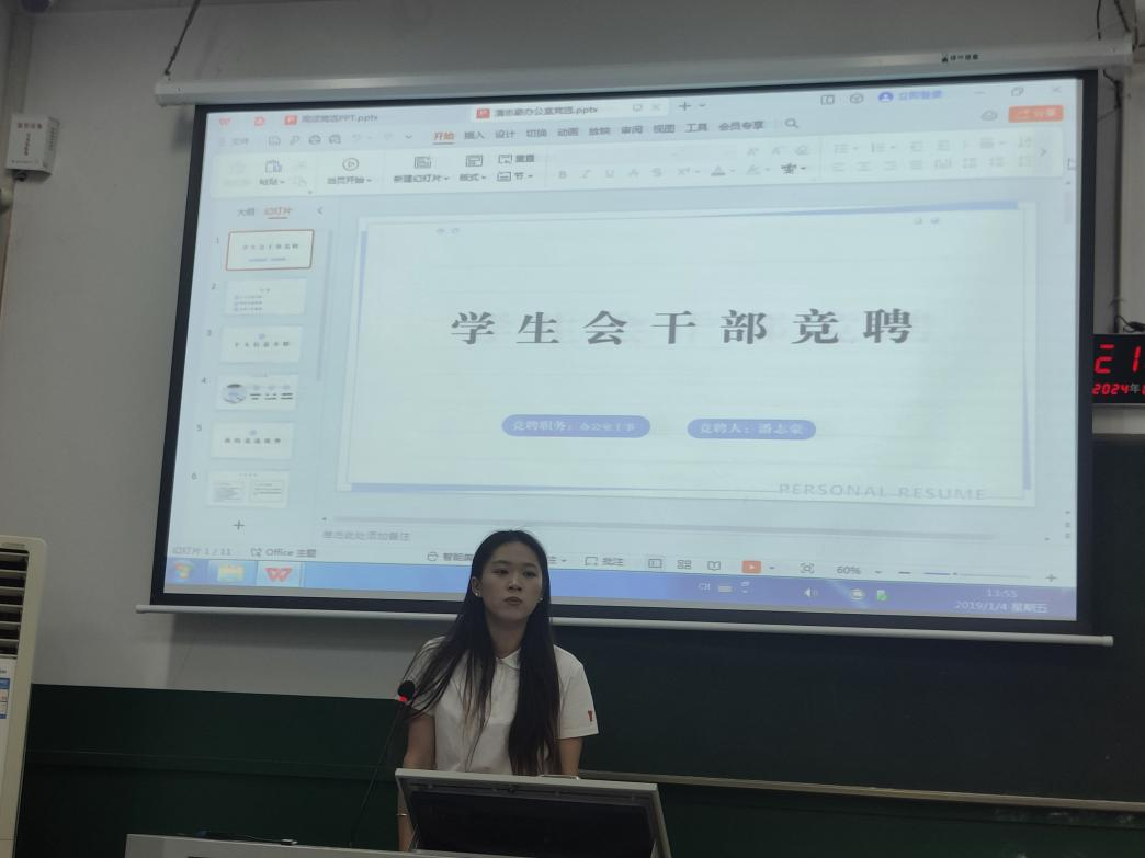 9月26日晚,公司研究生会第十一届招新竞选大会在公司鸿建楼503教室顺利召开。第十届主席韩一舟,党支部书记周振邦,研究生办公室助理杨雅茜以及第十一届研究生会全体成员参加了活动。此次活动由第十一届主席吴蕾主持。