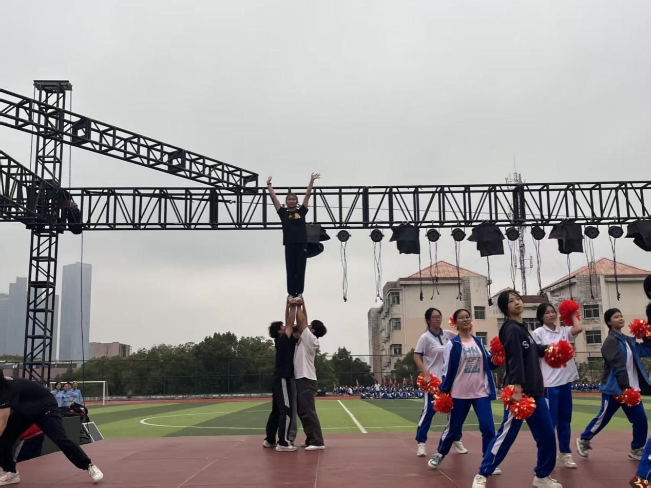 10月16日晚的开幕式上,"云旌九队"实习教师团队带来了精彩纷呈的展示。由实习教师组成的裁判员方阵以整齐的步伐、饱满的精神走过主席台,展现出体育人特有的专业气质。更令人瞩目的是,实习教师们还奉献了融合校本模块课等元素的特色体育表演,专业的动作、精湛的技艺赢得了全场师生的热烈掌声,成为开幕式上一大亮点。